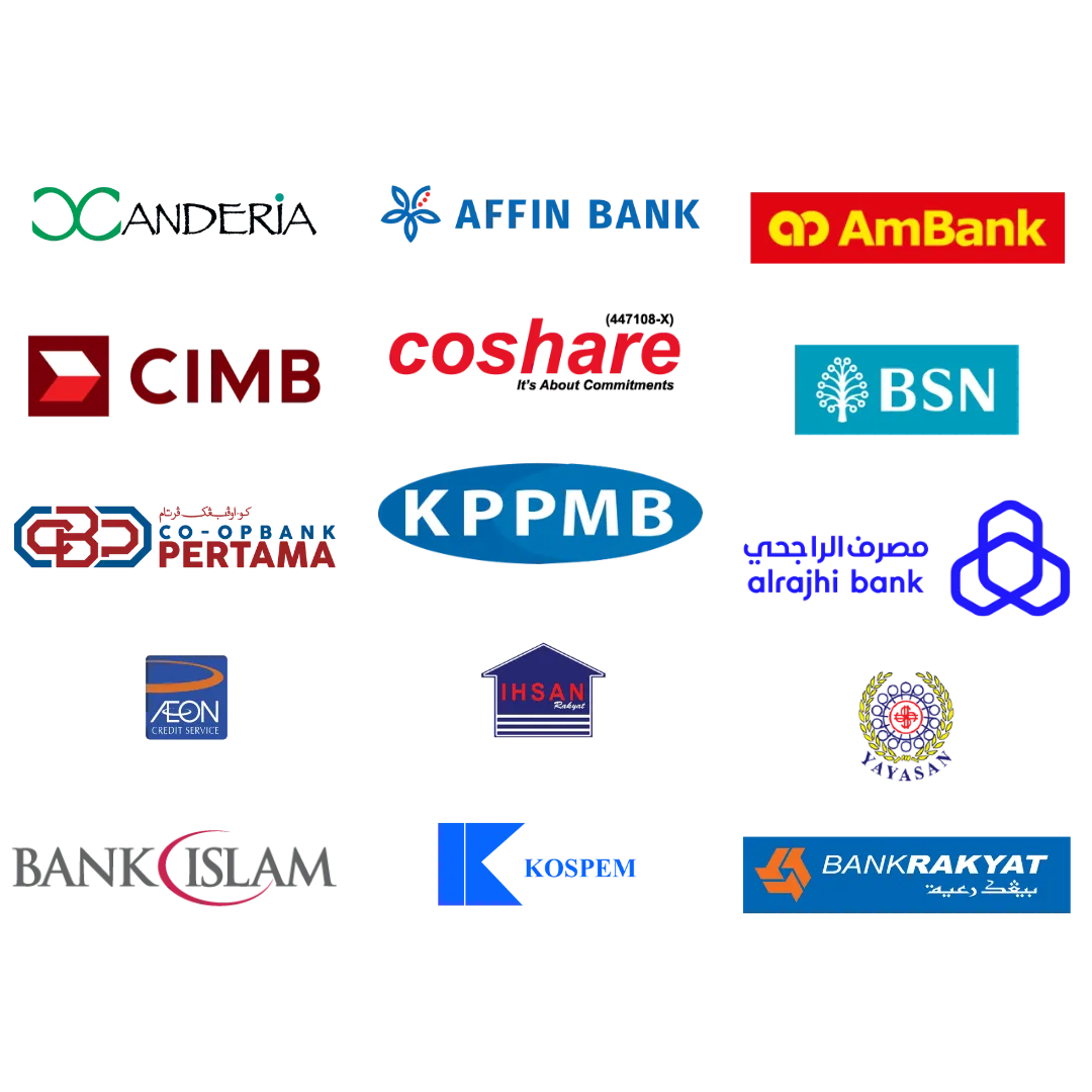 Kami dipercayai dan bekerjasama dengan bank-bank dan koperasi-koperasi terbesar malaysia